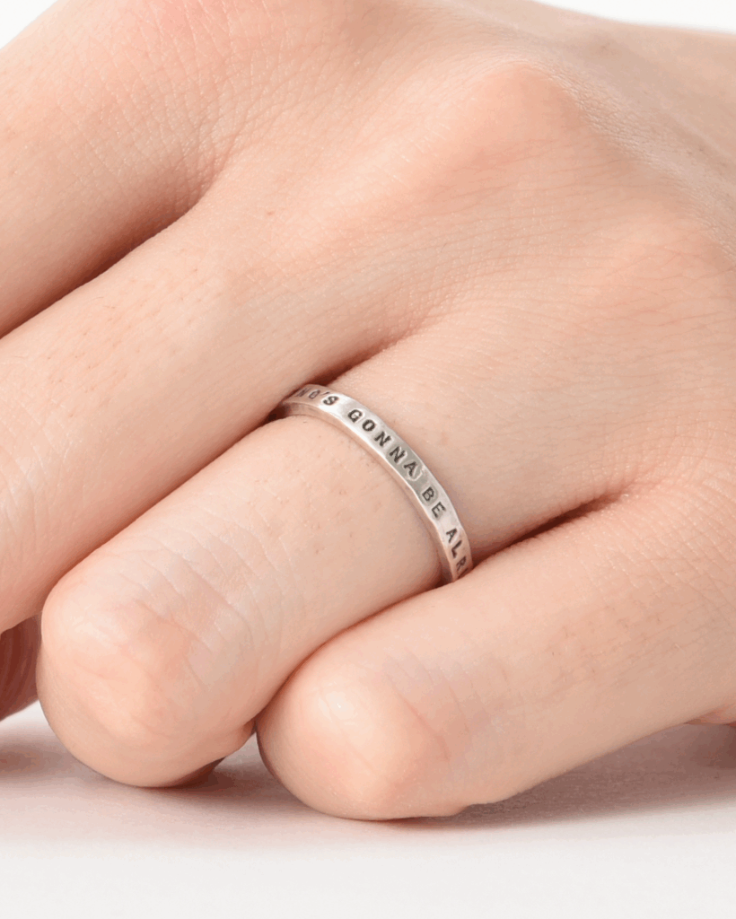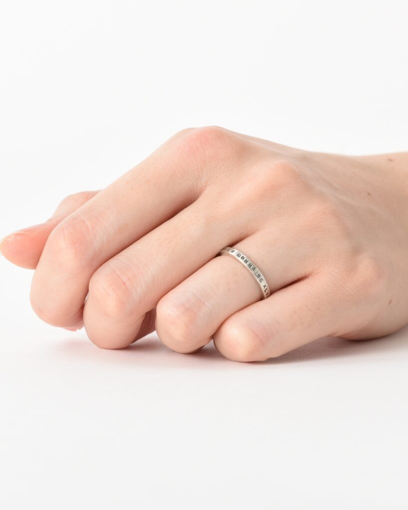どんなメッセージでも刻印できるシルバーのメッセージリング(平打ち1行タイプ、刻印小)です。