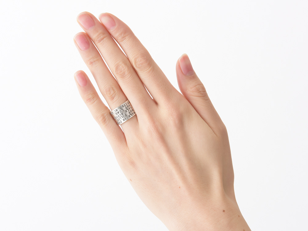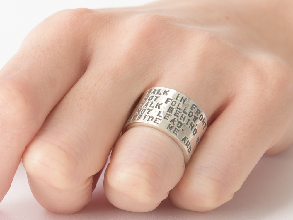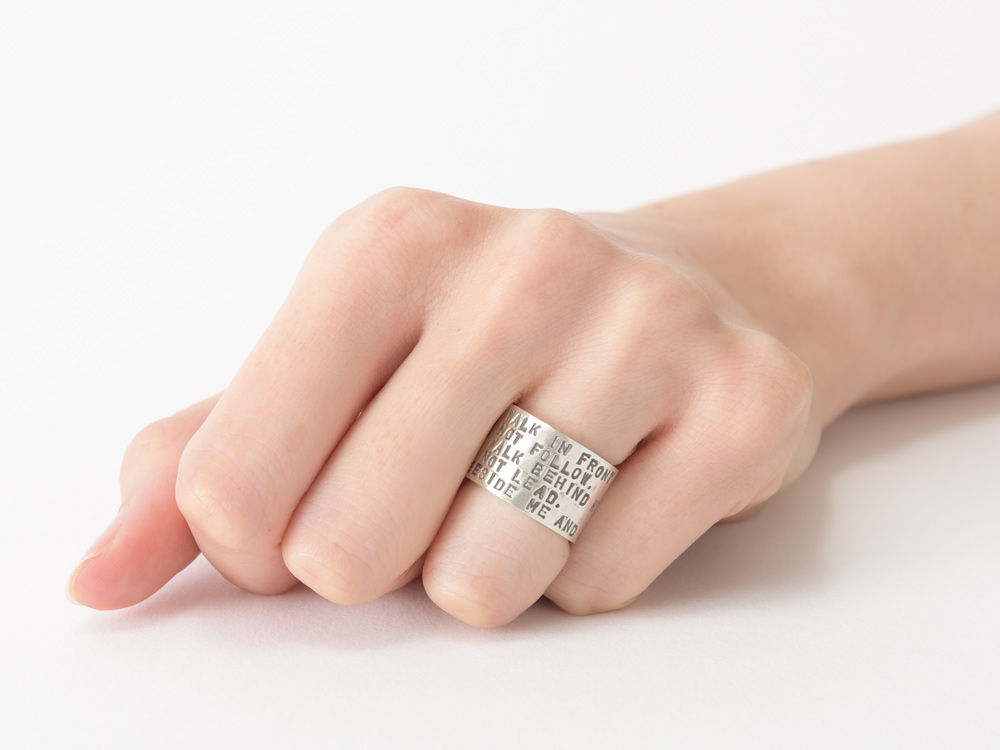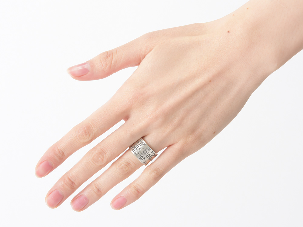 どんなメッセージでも刻印できるシルバーのメッセージリング(5行タイプ)です。